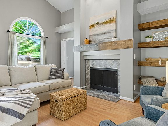 Tucked beneath a canopy of trees, this charming brick-and-siding ranch welcomes you with bright, open living spaces, tasteful renovations, and a layout designed for comfort and ease. Step inside to find vaulted ceilings, large windows, a cozy fireplace with wood mantle, and custom wood beam shelving that add both style and warmth to the spacious family room. The updated kitchen shines with granite countertops, subway tile backsplash, stainless steel appliances, and white cabinetry—perfect for both cooking and entertaining. A dining area between the family room and kitchen offers the perfect spot to gather for meals or conversation. The primary suite is a serene retreat with vaulted ceilings and a stylish ensuite featuring dual vanities, designer tile flooring, and updated walk-in glass shower. Two additional bedrooms provide flexible space for guests, or a home office. Enjoy outdoor living with extra storage and a spacious, fully fenced backyard, ideal for gardening, play, or gatherings on the patio. Perfectly located with quick access to Downtown Durham, RTP, shopping, and dining, this home balances modern comfort with timeless charm—ready to welcome its next owners. Third bedroom does not have a closet. There is an encroachment agreement to the owners of 6 Hertford Pl, a very small portion of their concrete driveway encroaches onto the lot. The seller is a licensed NC realtor. Homecoin's Addendum to Offer to Purchase is required with offer. It is found in the documents. Pre-Approval Letter or Proof of Funds must be submitted with all offers.