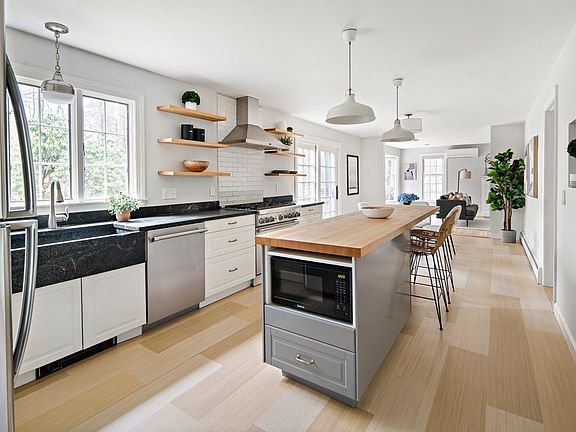Hickory Hill is one of the most coveted neighborhoods in town, nestled in natural beauty while close to two beaches, schools, and town center. This elegant home offers modern flair with classic details. It is set well off the road, surrounded by woodlands and incredible unique landscaping that creates a private oasis for play and rejuvenation. A large living room with a wood-burning fireplace greets you upon entry and flows easily to the open, airy kitchen, where there is room for cooking, dining, and homework sessions. Take advantage of a formal dining room for entertainment and a huge family room graced by built-ins for casual nights. Upstairs, the primary suite offers a welcome respite, including a spacious attached bath with a soaker tub and radiant heating, plenty of closet space, and beautiful hardwood floors. 3 other good size bedrooms complete this pretty picture. There is also a full unfinished basement!