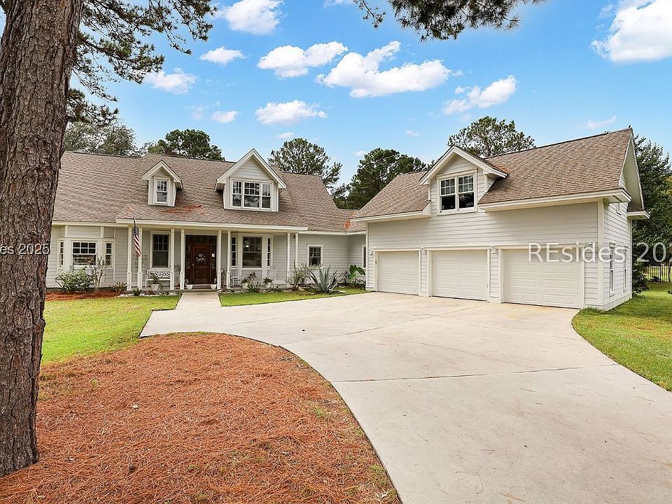 Welcome to 4 Hidden Lake Court, an exceptional Lowcountry estate tucked away on nearly an acre in the coveted Estate side of Rose Hill Plantation. Designed for both refined living and unforgettable entertaining, this 5-bedroom, 5.5-bathroom residence offers a rare blend of privacy, luxury, and function. Step inside to abundant natural light, and an effortless flow between formal and casual spaces. Each spacious bedroom boasts its own en suite bath, creating ultimate comfort and privacy for family and guests. The home includes an inviting eat-in kitchen with generous prep space. The outdoor oasis is pure paradise-a resort-style pool and spa surrounded by lush landscaping and ample patio space for lounging, hosting or unwinding under the stars. Above the three-car garage, a private apartment with full kitchen and living area offers the perfect retreat for guests, extended family, or a dedicated home office. Located in one of Bluffton's premier gated communities, residents of Rose Hill enjoy access to equestrian facilities, tennis, golf, community pools, trails, and the Colleton River. With mature trees, generous homesites, and Lowcountry charm throughout, this estate captures the best of Bluffton living.