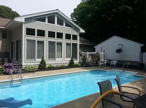 Welcome Home to this Picture Perfect, Meticulously Maintained Ranch set on Impressive Cul de Sac! Custom Features include Lovely Marble Electric Fireplaced Living Room, Ultra Stainless and Granite Dream Kitchen with Spacious Open Floor Plan, Charming Dining Room with Built-Ins. Immaculate Gleaming Hardwood Floors Throughout! 3 Great Bedrooms, Master with Custom Bath. Plenty of Room for the Extended Family! Full Finished Lower Level, Open Concept Family Room with Pellet Stove, Dining Area, 4th Bedroom and Home Office with Custom Built In Wall Unit! One Car Garage with Additional Storage! Newer Heat and Central AC Pump. One of a Kind, Breathtaking, Sunfilled Great Room with Cathedral Ceilings, Skylights, Multiple Sliders Leading to Charming Patio which Overlooks Backyard Paradise, Perfect for Entertaining! Beautiful In-Ground Pool, Tree Lined Yard, Tastefully Manicured Grounds, Sprinkler System, and Cozy Cabana! This Home Has it All... Come Take a Look!