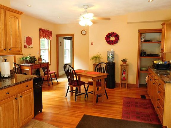 Turn-key Hilltop Retreat! Antique Colonial has been tastefully updated and well maintained. Large lot, over 1/2 acre, lushly landscaped w/perennials and stonework, on quiet cul-de-sac! Newer rear addition features large country kitchen with granite, cabinets galore, plus half bath - great for entertaining with multiple access to inviting wrap-around patio. Family room, dining room, living room w/charming built-ins. Wide pine floors, some under carpet. Front deck at main entry. 2nd floor with Master BR plus 2 smaller BRs and full bath. HUGE walk-up attic. All major updates within past 11yrs include vinyl siding, replacement windows (mostly Harvey), roof, newer heat (2017) updated electric (2018). Oversized 2-car garage (new doors) with rear walk-in access to storage loft. Beautiful terraced yard with sprawling stone-paver patio, artisan rock wall and lovely landscaping, Better Home and Gardens!! ***Showings to begin with OH, Sunday 8/25 12:00 - 1:30.***