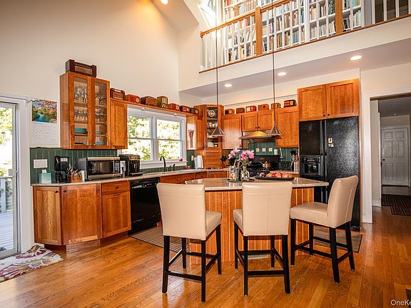 Experience the charm of coastal living in this fully furnished home, ideally situated near the beach and just moments from Huntington Village's lively shops, dining, and amenities. Step inside to a welcoming foyer that flows into a cozy living room. The open-concept kitchen and dining area feature soaring vaulted ceilings and a wood-burning fireplace , a perfect spot for gatherings. A spacious den with vaulted ceilings and a wall of windows overlooks the screened porch, offering serene seasonal water views. Gleaming hardwood floors run throughout the home, which includes four generous bedrooms, highlighted by a main-floor primary suite with a private en-suite bath. Utilities included! This is a 5 Month Fully Furnished Rental.