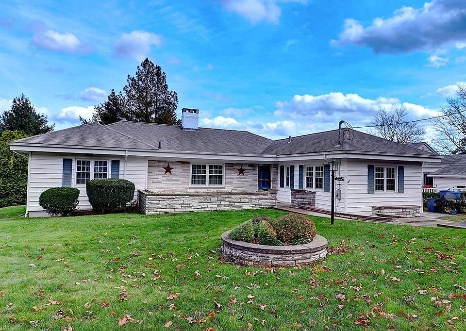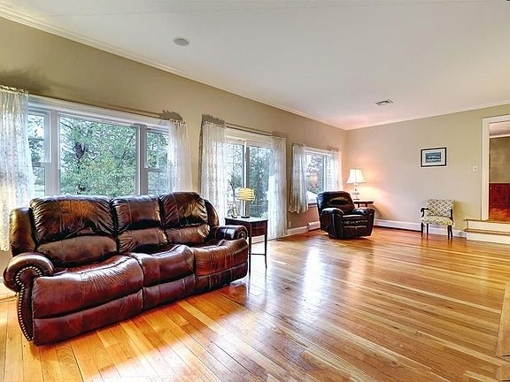 Sprawling 3 Bed Ranch on a corner lot in great neighborhood. If you are looking for one level living, look no more. This spacious ranch features gleaming hardwood floors throughout and has all new windows. The large eat in kitchen has been fully remodeled with cherry cabinets, granite counters and high end appliances. The Formal Dining Room has classic built-in corner cabinets with a large bank of windows streaming in plenty of natural sunlight. Step down into the massive Family room with fireplace and custom built shelving and a wall of windows and sliding door leading to the patio. 3 Large bedrooms on the left wing of the home with 2 full baths on this side. The home also has a den and 3rd bath. This bonus den could be a perfect guest suite. Town water and sewer. Central AC and newer heating system.