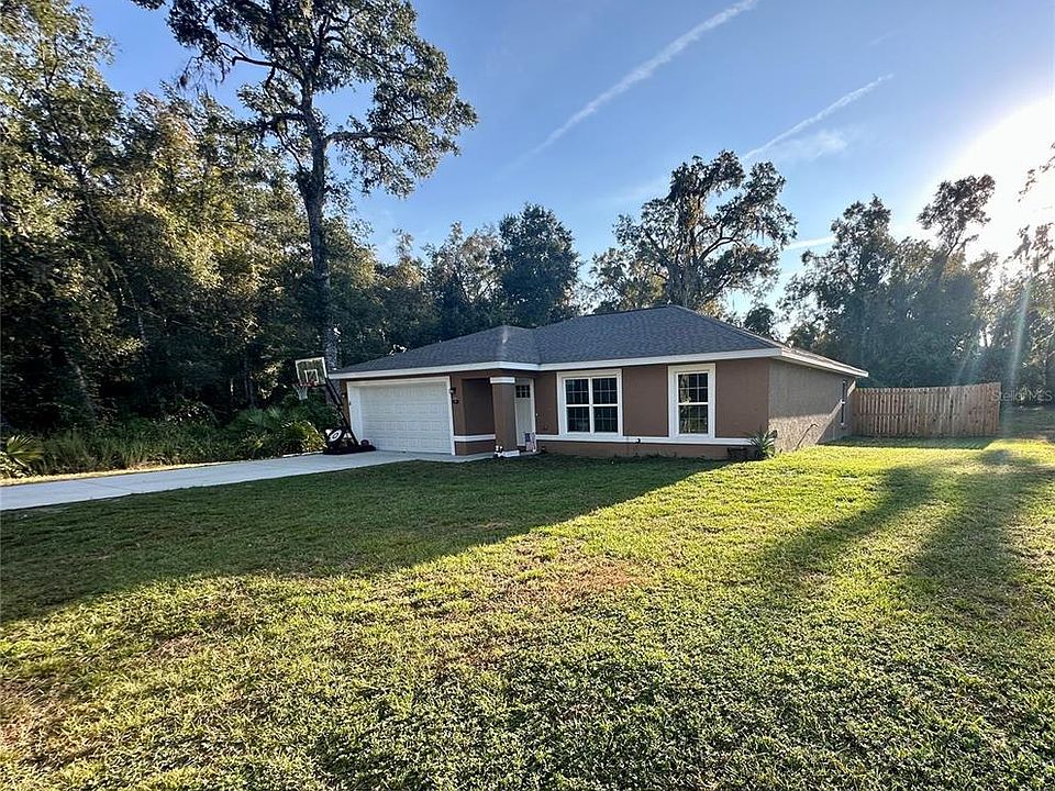 Welcome to this better than new meticulously maintained 3 bedroom, 2 bath home, built in 2023 and offering 1,332 sq. ft. of beautifully designed living space on an oversized 0.37 acre lot with a 2 car garage. This home features an inviting open floor plan with brand new 2025 tile flooring throughout all main living areas, creating a modern, seamless feel from room to room. The living room flows directly into the modern kitchen, complete with stainless steel appliances, abundant cabinet/counter space, a convenient pantry and gorgeous granite countertops. The large primary bedroom provides comfort and privacy, complemented by an en suite bathroom with a tiled walk in shower and a generous walk in closet. On the opposite side of the home, you’ll find two spacious guest bedrooms with the guest bathroom in between, featuring a tiled tub/shower combo. Step outside to a fully fenced backyard with no neighbors behind you, offering the ideal blend of privacy and space. This property also includes a Culligan whole house water softener installed in 2023 and a separate dog run, perfect for pet owners. With plenty of room for a garden, pool, or play area, the outdoor possibilities are endless. Located close to stores, restaurants, and schools, this home delivers the convenience you want with the comfort you deserve. Move in ready and truly better than brand new, don’t miss the chance to make it yours!