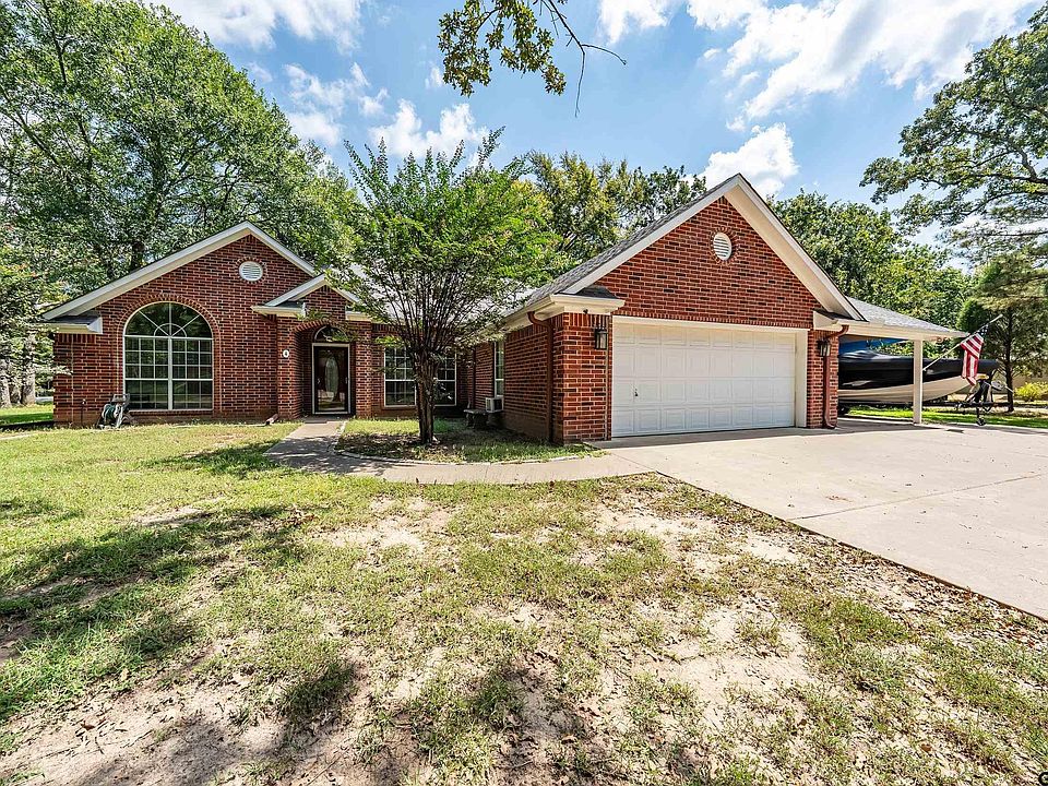 Welcome to Star Harbor on Cedar Creek Lake! This beautifully maintained 3 bedroom, 2 bath home, with a 2 car garage and covered carport sits on a spacious 1/2 acre corner lot in the highly desirable Star Harbor community. Inside, you'll love the open concept design, soaring ceilings, granite countertops throughout, and rich wood floors in the living area with a floor to ceiling austin stone- woodburning fireplace. The split-bedroom layout offers privacy, and the primary suite features two walk-in closets and a double vanity. The home has been well cared for and includes a new HVAC system. Outside enjoy the neighborhood boat ramp for lake access and picturesque 9 hole gof course, perfect for relaxing weekends. Whether you love boating, fishing, or simply soaking in nature, this property blends comfort and recreation. Call and come see today!!