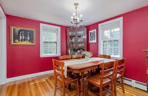 You will fall in love this charming cape situated on a large corner lot. Home features gleaming hardwood floors throughout, cozy fire placed living room and dining room. New kitchen with beautiful cherry cabinets, three spacious bedrooms and two bathrooms. Finished room in the basement. Brand new high efficiency heating system. Newer roof. Enjoy your summer nights in your sizable backyard perfect for entertaining. Centrally located in Braintree. Minutes from the highway, public transportation, shopping, dining and walking trails.