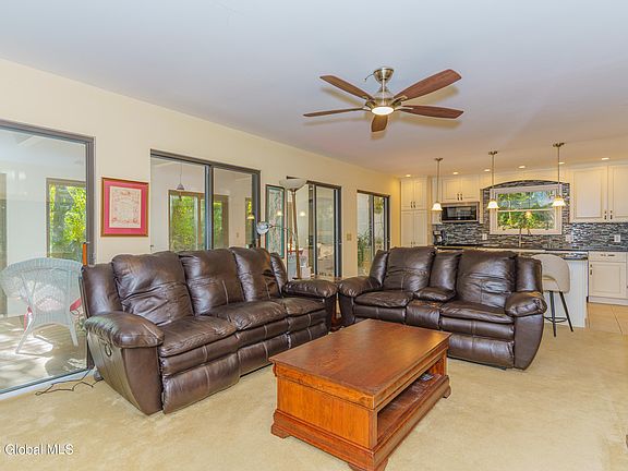 Enjoy ease of living in this passive solar contemporary home in a private lot ,yet a short walk to Main Street Ravena. Updated gorgeous kitchen with granite counters. Great room with beautiful stone efficient wood burning fireplace w/blower can heat the house in the colder months. Captivating enclosed patio for 3 season living. Office/den can be easily converted to 1st floor bedroom. New roof 2019. Kids can walk to their elementary school. Less than a mile to Hudson River boat launch. Enjoy the benefits of living in a small town with an easy 20 minute commute to Albany. .