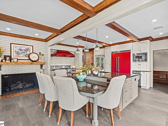 Experience the perfect blend of luxury, privacy, and convenience—just 10 minutes from Downtown Greenville. This 7300 sq ft estate on 2.3 manicured acres features a resort-style heated saltwater pool, full bluestone deck, and an outdoor kitchen with mahogany cabinets, premium grill, sink, and icemaker—all framed by a dramatic stone fireplace. Most of the home is on one level with seamless indoor-outdoor living through custom mahogany doors. The gourmet kitchen boasts a Viking refrigerator and double gas range. The main suite is a serene retreat with pool views, gas fireplace, heated floors, and dual custom closets. A second master upstairs makes an ideal guest suite. Enjoy a media/rec room, lighted tennis court, fire pit, heated doghouse, 4-car carport, and 300 sq ft workshop. Professionally landscaped by the firm behind Falls Park and Legacy Park. Just one mile from I-385, with quick access to I-85.