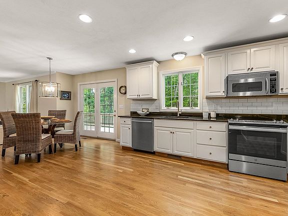 Welcome to this beautifully updated 3-bedroom, 2.5-bathroom colonial, perfectly situated on a private lot in one of Exeter's most desirable neighborhoods. As you step inside, you'll be greeted by an abundance of natural light & warm hardwood floors that seamlessly flow throughout the main level. The heart of the home is the well-appointed eat-in kitchen, featuring a tiled backsplash, ample storage, & stainless steel appliances. The kitchen opens to a large family room with a wood-burning fireplace. The main level also includes a separate dining room, a dedicated office, a comfortable den, & half bath. Ascend to the second floor to discover the luxurious primary suite, a true sanctuary with cathedral ceilings, two large closets, & en-suite bathroom offering a spa-like experience with premium fixtures & finishes. Two additional bedrooms, a bonus room with a closet, and a full modern bath provide comfort for family and guests. The finished third level adds even more living space, ideal for a playroom, home gym, or a second office. The home's versatile floor plan adapts to your needs, offering endless possibilities. Outside, the property continues to impress with a large deck, perfect for outdoor entertaining. The exterior has been freshly painted and landscaped, allowing you to move right in & enjoy the remaining days of summer. Additional features include an EV charger, irrigation system, and central air conditioning. Don't miss the opportunity to make this stunning home yours!