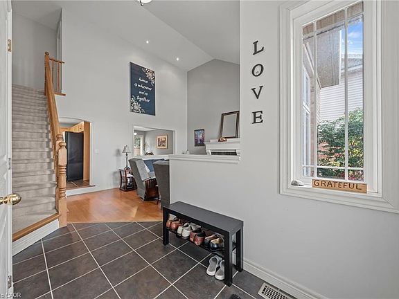 This well maintained two-storey home offers a blend of style, space, and functionality in one of Pariss most sought-after neighbourhoods. The main floor features a spacious sunken living room with vaulted ceilings and a gas fireplace, a large eat-in kitchen with Quartz countertops and slate tile, a full dining room, a two-piece bath, and convenient main-floor laundry all within a carpet-free layout. Upstairs, the expansive primary suite includes a walk-in closet and private four-piece ensuite. The finished basement provides a generous recreation area and ample storage. Outside, enjoy the privacy of a fenced yard with a concrete patio perfect for relaxing or entertaining. With key updates including a new furnace, roof, and A/C, and located minutes from Highway 403, parks, schools, and downtown Paris, this move-in-ready home is an exceptional opportunity in a thriving community.