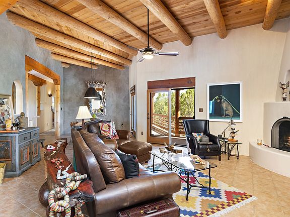 Beautiful custom Eldorado home on a cul-de-sac with separate working artist studio and mountain and foothill views! ***This home has been reduced 95K due to the presence of Kitec in the walls and the radiant heat tubing. Original price 870K. Estimate for $62,754 is in the supplements from Reliable-Tech to replumb and install 5 more splits - two already exist.*** The remaining 27K+ should cover drywall repairs. ***This single-level property has in-floor natural gas radiant heat and mini-splits in the primary bedroom and studio for air conditioning. Dramatic high viga ceilings in spacious living room. Three wood burning kiva fireplaces - primary bedroom, living room and rear covered portal. This happy and sunny home has a deck and covered portal surrounding 2/3 of the home and overlooks the greenbelt with amazing sunset views. Kitchen opens to dining area and has it's own breakfast area and lots of counter space and storage. Primary bedroom has walk-in closet and separate bathtub and shower. Each of the 4 bedrooms has exterior access. New modified bitumen roof 2018 with 10-year warranty. New STO stucco 2018 with 7-year warranty. Deck refinished last summer. Each bedroom has exterior access. NO STEPS, NO CARPET. Proper laundry room with storge. Finished oversized 2-car garage. Custom-made vanities above bath sinks all convey. Property has a Leak Defense System to alert owner to any unusual water usage. Items which do not convey - two lights over dining table and entry light.