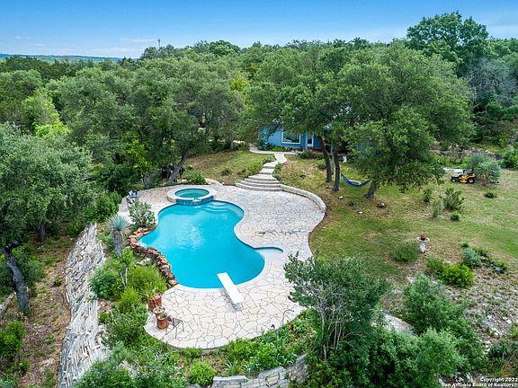 HUGE PRICE REDUCTION!! ENJOY PANORAMIC HILL COUNTRY VIEWS FROM EVERY DIRECTION FROM THIS CHARMING 4/2 ROCK HOME LOCATED ON 3.88 ACRES ON A QUIET, PRIVATE, CUL DE SAC, HILL TOP IN COVETED WIMBERLEY TEXAS! THIS PROPERTY IS IDEALLY LOCATED, ABOUT 3 MILES FROM THE VILLAGE OF WIMBERLEY. LOUNGE BY YOUR BEAUTIFUL SWIMMING POOL COMPLETE WITH DIVING BOARD, WATER FALL ,UNIQUE ROCK RETAINING WALL AND SPA. THIS SPACIOUS HOME IS LIGHT , OPEN AND BRIGHT WITH BIG PICTURE WINDOWS LOCATED THROUGHOUT TO ENJOY THE BREATH TAKING VIEWS. THIS LOVELY HOME HAS MANY UPGRADES~ COUNTRY KITCHEN IS OPEN TO 2 DINING AREAS ~ LIVING AREA HAS TALL BEAMED CEILINGS AND IS IS BRIGHT AND OPEN~ PRIMARY BEDROOM OPENS TO THE RELAXING BACK PATIO AND POOL AREA ~ EN SUITE PRIMARY BATH HAS HIS AND HER WALK IN'S, DUAL SINKS AND A STAND UP SHOWER ~ STAND ALONE 2 CAR GARAGE WITH A HUGE STOREROOM ~ LANDSCAPE HAS MANY NATIVE AND XERISCAPE PLANT SPECIES IN A PARK LIKE SETTING. OH, DID I MENTION THE GORGEOUS VIEWS FROM ALMOST EVERY ROOM IN THIS HOME!!! COME AND ENJOY YOUR "LITTLE BIT OF HEAVEN" IN WIMBERLEY TEXAS!!!