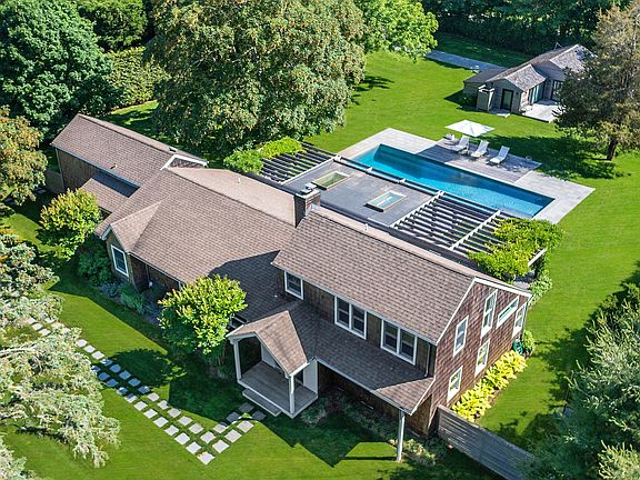 This perfectly renovated beach house with modern interior lies south of the highway in the Georgica Estate section of East Hampton. Featuring 5 bedrooms, 4.5 baths as well as a pool house cottage with 2 rooms plus a full bath. The house offers classic charm with updated amenities and a clean, modern and open interior design. The main living spaces offer a bright and open loft-like feel and flow seamlessly into the outdoor living and dining area. Outdoors enjoy the oversized covered porch, outdoor kitchen and heated gunite pool with extensive patios. The 1 Acre property provides mature landscaping and privacy. This sought after location, south of highway in EH Village, is only a short distance from Georgica beach.