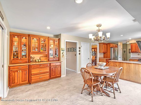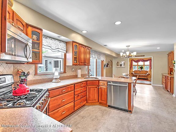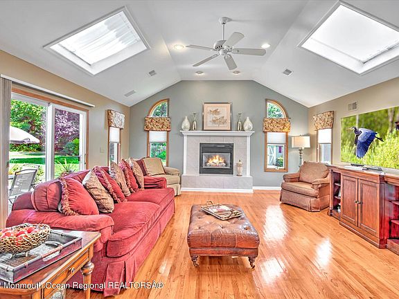Spectacular fully renovated 4/5 bedroom West Long Branch center hall colonial boasts fabulous 24x18 vaulted Great Room addition offering hardwood floors, gas fireplace, skylights and sliders to the patio. A tastefully updated kitchen offers raised panel cabinetry, quartz counters, tile back splash, SS appliances and custom buffet with glass panel doors, quartz counters and recessed lighting. The first level office/bedroom, off the kitchen, features pocket privacy doors and a bay window for added natural light. All 3 bathrooms have had custom renovations as well. Engineered wood floors and custom window treatments enhance the living room, dining room and 1st level bedroom/office. All four 2nd level bedrooms are so well sized and boast updated carpets and window treatments. Luxury vinyl plank flooring runs from the foyer through the kitchen, powder room and laundry, perfect for pets and heavy foot traffic.