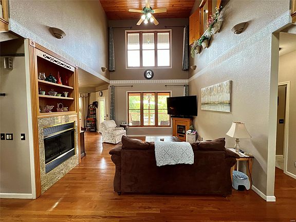 Well maintained, 1.5 story home located in an established neighborhood with over 2,000 sq. ft. and a lot to offer! As you walk in the front door, you will be greeted by a large living room with a cathedral ceiling. Double fireplace that service the kitchen and living room. Kitchen with center island, breakfast bar, and plenty of cabinet space. Main floor laundry, office, bedroom, and full bath rounding out the main floor. Leading upstairs you will find a double staircase going to their own bedroom. Both bedrooms having a private bathroom and a balcony connecting the two. Bonus room above the garage makes great space for storage. Outside you will find multi-level decks with a gazebo overlooking the Little St. Francois River and covered front porch. Conveniently located in Pine Castle Estates, this home is move-in ready waiting for it's new owners!