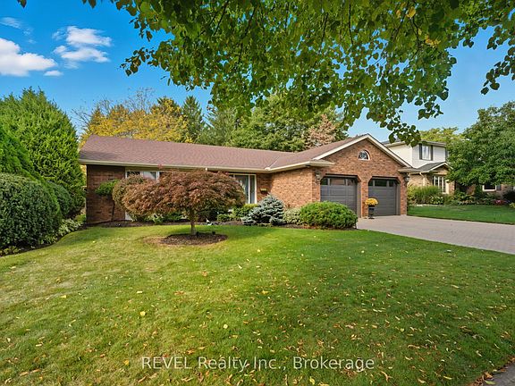 Welcome to 4 Kevin Drive, a well-kept brick bungalow located on a quiet, tree-lined street in the desirable town of Fonthill. This home sits on a large lot with a private backyard surrounded by mature trees, offering a peaceful setting in one of Niagara's most sought-after communities. The main level features three bedrooms, an updated kitchen, bright natural light throughout, and the convenience of main floor laundry. There is also direct access to the oversized two-car garage, providing ample storage or workshop potential. Outside, the spacious yard is ideal for outdoor living, gardening, pets, or future customization. Living in Fonthill means enjoying small-town charm with nearby amenities including local shops, restaurants, parks, walking trails, golf courses, and quick access to Highway 406, Niagara College, and surrounding Niagara communities. Whether you are downsizing, relocating, or looking for a bungalow in a beautiful, established neighborhood, 4 Kevin Drive offers a fantastic opportunity in a location known for its community feel and natural surroundings.