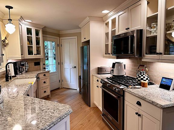 Discover the epitome of modern luxury in this stunning 3-bedroom, 2.5-bath home located in a quiet, upscale neighborhood. This completely remodeled gem features exquisite updates from the kitchen to the bedrooms and the fully finished basement. The living room, with Carlisle hardwood floors, boasts soaring windows and a cathedral ceiling, flooding the space with natural light and creating an inviting, airy atmosphere. The gourmet kitchen is a chef's dream, equipped with granite countertops and high-end appliances. The open floor plan allows a natural flow through the living, dining, and kitchen areas, creating an ideal space for entertaining. The lower level offers a versatile game room, a full bath, and a bedroom suite, which could serve as an accessory dwelling unit (ADU) for guests or additional family members. Outdoor living is equally impressive with two elegant brick patios and beautifully landscaped grounds, providing a perfect setting for relaxation and entertaining. Nature enthusiasts will appreciate the home's proximity to Goose Pond hiking and mountain biking trails, offering endless outdoor activities just minutes away. Conveniently located close to top-rated schools, shopping, and dining, this home is also a short walk to downtown Keene, where you can enjoy all the amenities and vibrant community activities it offers. This exceptional home is a rare find and offers a perfect blend of modern comfort and timeless elegance. Book your private tour today!