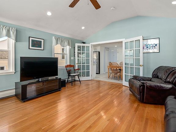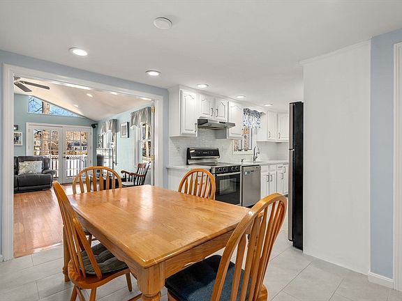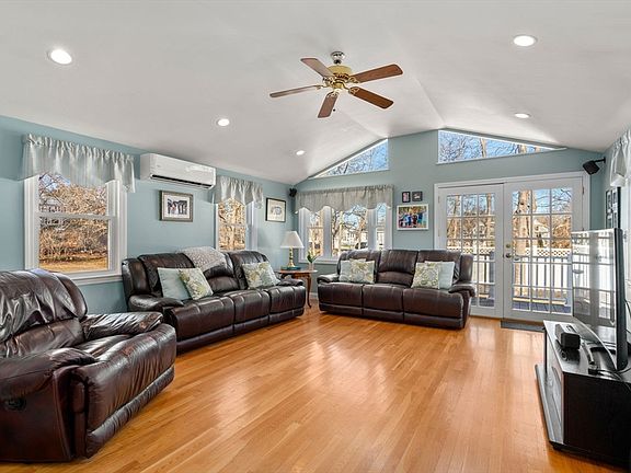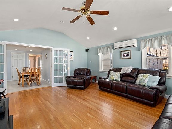 A stunning Gambrel Colonial home offering 8 rooms, 3-4 beds & 2 full baths. The second-floor primary suite includes a spacious bedroom with two double closets & a modernized (2016) bathroom w/ceramic tile & walk-in shower. The other two bedrooms are roomy w/hardwood floors & double closets. The sun-lit living room has a wood-burning fireplace, while the formal dining room has a chair rail, linen closet & is perfect for entertaining. The bright kitchen includes stainless steel appliances & leads to a cozy 3-season porch, a 4th bedroom currently used as a den with storage closet, a coat closet, a pantry, & family bathroom. Other features include a gorgeous sun-filled great room with a vaulted ceiling & French doors to a deck. The basement offers a media/playroom, storage, & laundry, along with a new water heater (2023) & oilburner. Additional amenities include mini split air conditioning, a 30-year warranty roof (2009), & whole-house exhaust fan, detached garage & hardwood floors.