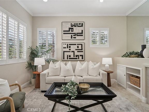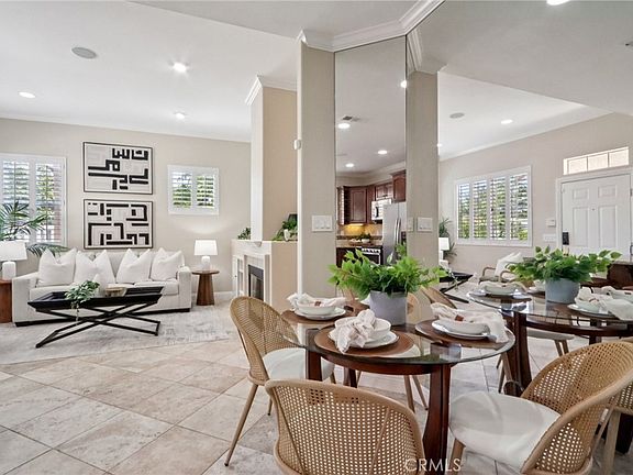 Welcome to 4 Las Flores, a completely detached home in the sought-after gated community of Flores Los Alisos. The light-filled living room with a cozy fireplace flows seamlessly into the dining area and kitchen, appointed with granite countertops, stainless steel appliances, and a breakfast counter. A powder room and direct-access two-car garage with wall-mounted cabinets and overhead storage complete the main level. Upstairs, the primary suite features a walk-in closet and an ensuite bath with dual vanities, while the secondary bedroom enjoys an adjacent full bath. A laundry closet adds convenience on the second level. The private backyard is a tranquil retreat, highlighted by a lush lavender bush that attracts hummingbirds and butterflies while naturally repelling summer pests. Enjoy a lemon tree, two fig trees, organic herbs, and fragrant jasmine lining the fence. Community amenities include a sparkling pool and spa. Centrally located near Aliso Viejo Town Center, the 73 Toll Road, hiking and biking trails, award-winning schools, and just minutes from the beach.
