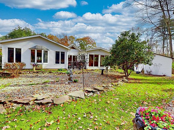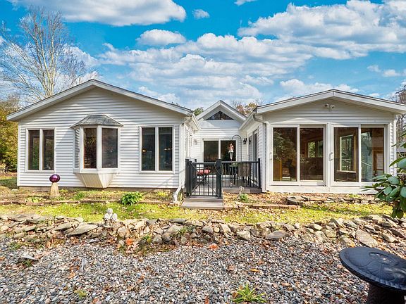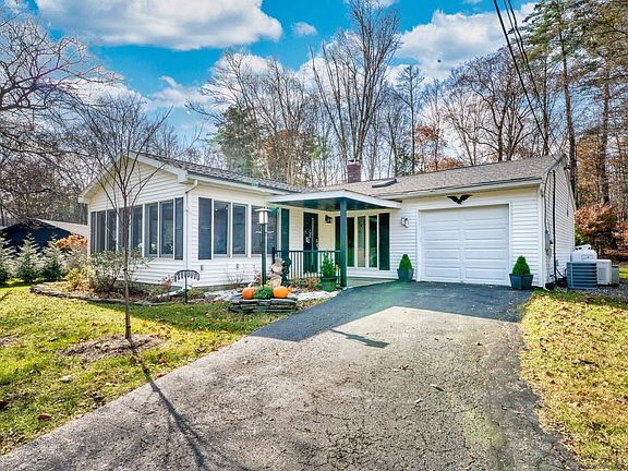 Welcome to Lazy Brook Lane in our beloved Town of Woodstock! This charming home with delightful finishes is unassuming from the street, but a real wow when you walk in. It sits on just over half an acre parcel, filled with tons of lovely plantings, a garden, and sweet woods behind. Once you enter the front door into the beautiful vaulted sun room, the one level layout keeps going and going. The super bright primary bedroom has two large cedar lined closets, and a massive ensuite bath with shower, soaking jet tub, double sink vanity, and the laundry. There is another bedroom down the hall, serviced by the full hall bath, and a third room that is being used as an office with a very nice built-in desk and storage. The kitchen, the kitchen! This gourmet chef's kitchen is just beautiful, with cherry cabinets, granite counters, ample storage, and all the perks. It opens up over a large island with seating, into the huge window-filled living room space, overlooking the backyard gardens and woods. You can enjoy outdoor seating on the deck, or sit in your bright sun room enclosed by sliding glass doors. This house really has it all... attached garage, 2 sheds, open living space with hardwood floors throughout, chef's kitchen, tons of entertainment space, and super close to Town. Come see for yourself!