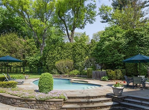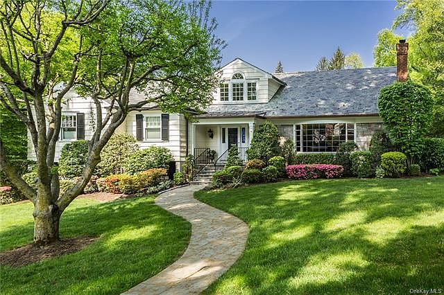 A delightful, easy walk to school, train and shops is yours from this picturesque Colonial on a quiet cul de sac right off Pondfield Road. Not only is it surrounded by lovely, landscaped property but it offers a wonderful pool for summer enjoyment.The interior has a gracious, wide front hall introducing a pretty living room with bow window and marble fireplace, a formal dining room and a large and modern eat-in kitchen with expansive dining area overlooking the pool and lawn. Both the kitchen and dining room conveniently open to an attractive screened-in porch...perfect for entertaining and watching the kids enjoy the pool. An inviting family room adjoins the kitchen creating fabulous flow. The convenient powder room off the foyer completes the main floor. A couple of steps up are 3 bedrooms which include a master with en-suite bath plus two more good sized bedrooms and full hall bath. Upstairs there are 2 more spacious bedrooms and bath plus a playroom that could easily be an additional 6th bedroom.The 1400 square foot(not include in total house sq. footage) lower level of this house is sensational space.....a light, open, beautifully designed and renovated family room with theater, billiard room w/ kitchen and full bath. In addition to a nice, modern laundry room, there is storage galore.With separate entrance to the outdoors and another entrance to a big two car garage, this attractive level adds to the house's amazing livability.With its super convenient, walk everywhere location and wonderful space this new offering is a must see.Great value in today's market.