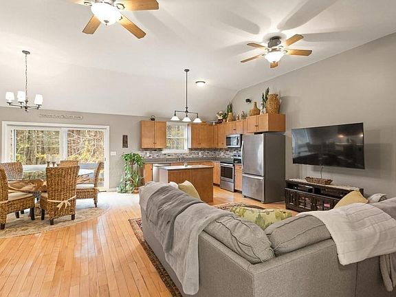 **MULTIPLE OFFER NOTIFICATION. OFFERS DUE BY 12 NOON 11/11. OPEN HOUSES CANCELLED** Make this beautiful Ipswich home your countryside retreat! Built in 2004, this 4 bedroom, 3 bathroom custom ranch style home is tucked away on a generous 6 acre lot. Open living/dining/kitchen area with cathedral ceilings, kitchen island, and a gorgeous stone fireplace as the centerpiece. All four bedrooms and laundry room on main living level. Primary bedroom has ensuite. Bonus lower level has 2 finished rooms plus bathroom. Lower level also has its own separate entrance from rear of home. Many recent updates including interior and exterior paint, water heater, and appliances. Hardie board siding. Attached two car garage. Tons of storage. Bring lots of ideas for what else you can do with the spacious backyard with fire pit and shed.