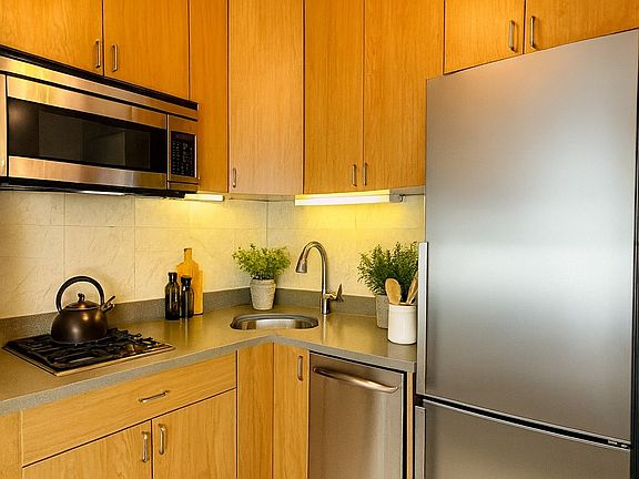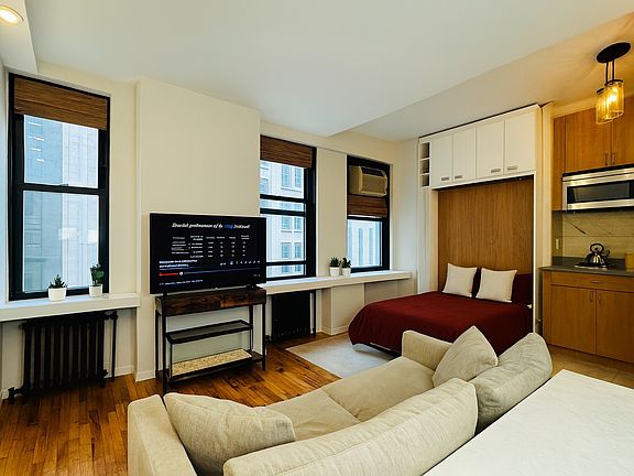 High ceilingsStainless steel appliancesCustom storageMurphy bedLarge windowsModern kitchen