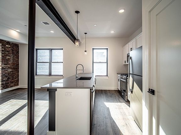 Experience modern loft-style city living at the brand new Printing Press Lofts. This top floor 2 bed 2 bath features a modern kitchen with GE stainless steel appliances, granite countertops, and an oversized island that overlooks a large living area with high ceilings, exposed beams, beautiful hardwood floors, original brick accent walls, a private balcony and washer/dryer. Each unit offers its own individual central heating/cooling and air filtration system, shared access to an expansive roof deck with ocean and city views, a dedicated storage unit, plus bike racks in the basement. Located near Central-Maverick Square in East Boston, this 1915 historic building once housed the headquarters of the East Boston Times newspaper and numerous printing presses. With a Walk Score of 97 out of 100, residents can access local grocery supermarkets, retail shopping, restaurants, Boston Harborwalk and the Maverick T blue line (0.6 mi) with direct access to Downtown Boston and Logan Airport