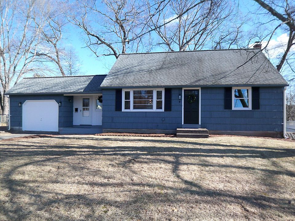 Welcome to this beautifully renovated 4 bedroom, 1.5 bath cape in sought-after south Enfield! Enter through the refreshed family or dining area with new plank flooring and a new sliding glass door that leads to a great deck & backyard. Take a right into a brand new, gorgeous kitchen, open to living room with all new shaker cabinets, granite counters, ss appliances, large butcher block island w/plenty of seating & stylish light fixture, custom tile, recessed lights & brand new hardwood flooring. Refinished floors to match will lead you to a tastefully updated full bath, a large primary and 2nd bedroom. Walk through a large living room and take the stairs to the 2nd floor to 2 more freshly carpeted bedrooms & a brand new half bath! Down 2 floors, there's even more HEATED, finished space w/ an extra 350 sq ft of freshly carpeted area that has potential for games, TV, playroom or all the above! Additional added heated dining area off kitchen brings total square footage to 1750! A large, extra wide garage will house your car & much more. The NEW windows are all tilt-in & energy-efficient. Young boiler & roof, new paint everywhere, new light fixtures & many more updates top this beautiful home off. Don't miss this! It will not last!