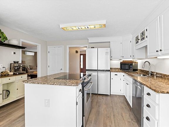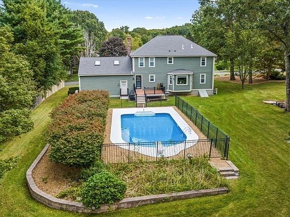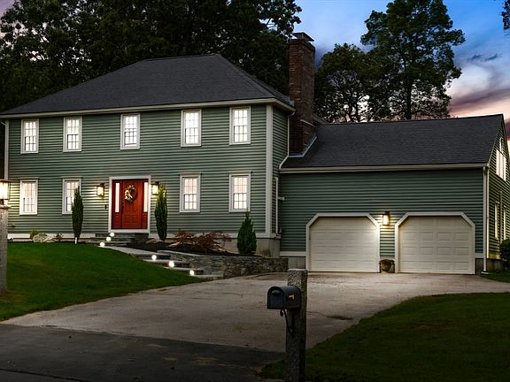 Set in a desirable double cul-de-sac neighborhood, this spacious Colonial blends charm & modern comfort ~ Welcoming curb appeal highlighted by new landscaping & granite-step walkway w/ accent lighting ~ Inside, a warm layout offers a formal dining room w/ hardwood floors & wainscoting ~ The kitchen is ideal for everyday living & entertaining, featuring a center island & bright breakfast nook overlooking the backyard ~ Living room boasts a cozy fireplace & access to the deck, yard & in-ground pool—perfect for summer fun! ~ Upstairs, the primary suite is a retreat w/ a fireplace, walk-in closet & spa-inspired bath ~ Two additional bedrooms & full bath accommodate family or guests, while the large bonus room over the garage and finished room in lower level are perfect for office or playroom ~ New oil tank, water softening system and mini-splits for efficient heating and cooling ~This home offers comfort and convenience in a peaceful setting close to shopping, dining & major routes! ~