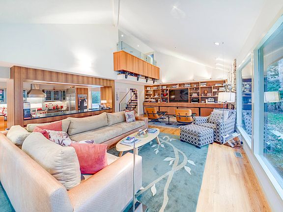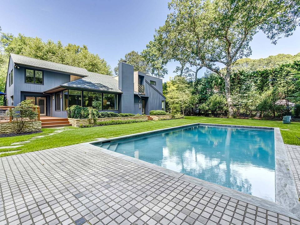 Rental Registration #: 24-239 Convenient to all, this striking Modern home located in the Hansom Hills section of East Hampton's Village Fringe, has been beautifully renovated and stylishly furnished. Features include five bedrooms, five bathrooms, an open floor plan with living room, dining room, chef's kitchen, den and finished lower level with playroom/media room. Walls of glass offer views of the beautifully landscaped grounds, mahogany deck, heated pool and outdoor kitchen. Located on a quiet cul-de-sac street less than a 5 minute drive to the village shops and ocean beaches.