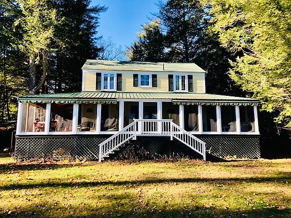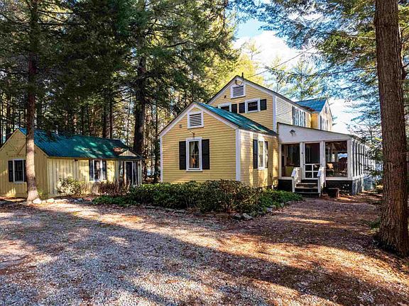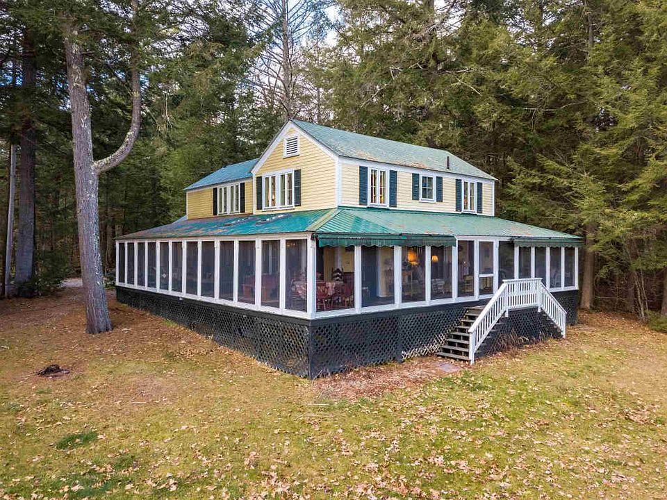 Enjoy 259' of private waterfront on pristine Kezar Lake. This beautiful colonial has a flat lawn to the water and two docks for swimming and boating. Built in 1928 it was moved onto a new foundation in 1993 and updated to a four season home. The spectacular 944sf wrap around porch is where you will surely spend all of your time. The main home has 3BR/2.5 baths plus an office. The cottage has 2 additional rooms for guests, and a bath. There is a modern 4 BR septic servicing the property. The large living room has picture windows facing the Lake and porch access. A new wood stove keeps it cozy and you will love the sweet dining room just off the kitchen. Currently winterized for the season, the home has forced hot air propane heat on the main level and electric heat above and in the cottage should you wish to live in the home year round. There is an outdoor toy shed for your jet ski, canoes and kayaks plus additional storage below. Located at the Southern end of Kezar's Middle Bay, a short distance to the marina and the public beach. Enjoy boating, swimming, and fishing for bass, lake trout, and salmon on one of the cleanest and most scenic lakes in Maine. In winter there is ice fishing, snowmobiling, snowshoeing and of course skiing at over 9 area ski resorts in NH and Maine within a one hour drive. The tax free resort town of North Conway, NH is just 20 miles away and Portland, Maine is a great spot for a day trip. As they say in Maine, ''It's a Keeper!''