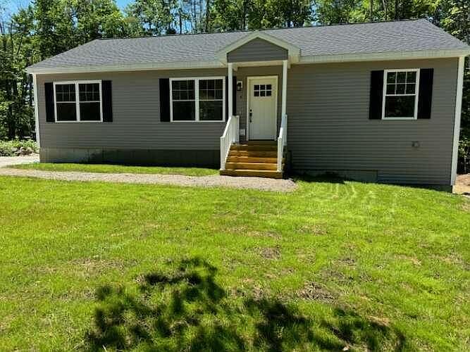 Beautiful stick built light and airy 28 x 48 ranch style home located on a quiet street. Cathedral ceilings, loads of closet space and ceiling fans throughout. Spacious kitchen has plenty of storage and a beautiful 5 foot breakfast bar. This home has quality windows, fiberglass doors and slider. Efficient propane heating system, upstairs laundry, two walk in closets. This gorgeous, turnkey home is situated on a 1/ 2 acre private wooded lot. Enjoy the various beaches, clubhouses and everything this beautiful lakeside community offers. Enjoy 4 wheeling or snowmobiling right from your door. Has room for a garage if needed on either side. Has full walk out basement with sliding door access. Generous appliance package allowance. Additional upgrades include front porch vinyl posts and railings, white shaker style kitchen cabinets, granite counter tops, up graded lighting, rear sliding door, recessed coffee/liquor bar to mention a few. Located 50 feet off of paved road. Won't last long. Don't miss out. Quick response from experienced builder.