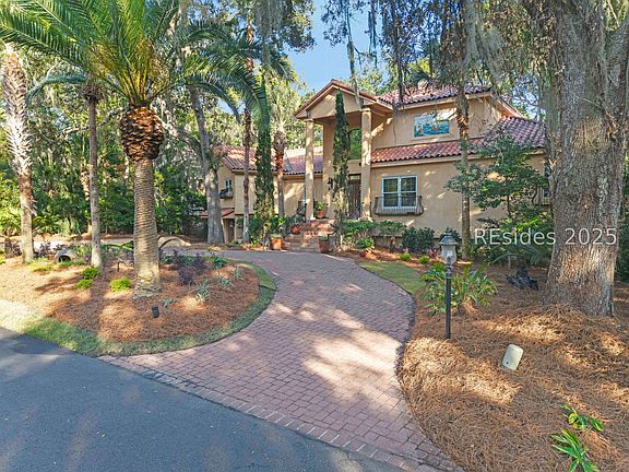 Oceanside Palmetto Dunes - 6th Row from the Beach! One-of-a-kind Mediterranean-inspired waterfront residence nestled along the 11-mile waterway and just steps to three miles of private beach. This must-see home features a spacious open floor plan, gourmet eat-in kitchen, 4 bedrooms, 4.5 baths, custom bunk room, three living areas, three wet bars, an impressive 350-bottle wine cellar, and 4 balconies to enjoy the sound of the nearby ocean waves. The fabulous primary suite offers huge walk-in closets and a private balcony overlooking the water. The oversized, air-conditioned, three-car garage provides excellent storage and functionality. The owners have invested nearly $300,000 in recent upgrades. Outside, enjoy beautifully manicured grounds, a circular paver drive, private boat dock with bulkheading, heated pool, whole-home generator, elegant wrought-iron railings, and covered porches. Quality from top to bottom-this home creates an environment you and your guests will never want to leave.