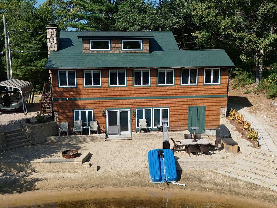 Charming 4-Season Lakefront Retreat on Ossipee Lake!! Don't miss this beautifully maintained 4-season home nestled in a quiet cove off Broad Bay! This warm and welcoming property features a spacious country kitchen with center island, cozy living room with a wood-burning fireplace, and a convenient first-floor master suite. Enjoy the changing seasons from the lovely 3-season porch perfect for relaxing or entertaining. Upstairs offers a large bedroom, open sleeping area, and a ¾ bath, ideal for guests or family. The finished lower level expands your living space with a generous family room, classic woodstove, guest area, bar room, and an additional ½ bath. Walk right out to your private lakeside retreat with sandy beach and clean, swimmable frontage! Additional features include a metal roof and low-maintenance Trex decking. Boat dock is included, and the home is being sold fully furnished — just move in and start enjoying lake life! Schedule your showing today — your year-round waterfront escape awaits Open house 10/4 12 to 2 pm