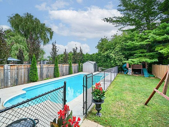 This Custom-Built Stunner Blends Modern Elegance With Resort-Style Living On A Rare, Extra-Deep 168-Foot Lot. Offering Over 3,300 Sq Ft Of Carefully Curated Living Space And Luxurious Finishes, Inside And Out. From The Gorgeous Stone Facade To The Second-Floor Walkout Balcony, This Home Makes A Statement.Step Inside To An Open-Concept Main Floor With 9-Foot Ceilings, Hardwood Floors, And A Seamless Flow Throughout. A Formal Dining Room Sits At The Front, Perfect For Entertaining. While A Stylish Freestanding Electric Fireplace Separates It From The Expansive Family Room. The Chef-Inspired Kitchen Impresses With Custom Cabinetry, Quartz Countertops, A Striking Waterfall Island, Built-In Microwave, Gas Range, Stainless Steel Appliances, Bar/Servery Area, Eat-In Breakfast Space, And Walk-Out To The Backyard. Upstairs, The Primary Suite Is A Luxurious Retreat With A Tray Ceiling, Massive Walk-In Closet, Private Balcony, And A Spa-Like 5-Piece Ensuite Featuring A Freestanding Tub, Double Vanity, And Oversized Glass Shower. Two Bedrooms Share A Jack-And-Jill Bathroom, While The Fourth Enjoys Access To A Separate 4-Piece Bath. A Second-Floor Laundry Room Adds Everyday Convenience. Step Outside To A Professionally Landscaped Backyard Oasis With A Gorgeous Inground Pool Featuring A Shallow Lounging End, Lush Greenery, Mature Trees For Privacy, Cabana, And Shed. One Side Of The Yard Is Fenced With A Grassy Area. Perfect For Kids Or Pets. Additional Highlights Include Hardwood Stairs And Upper Hallway, An Attached 2-Car Garage With A 4-Car Driveway, Separate Basement Entrance, Ideal For In-Law Living Or Rental Potential. Plus Upgraded Lighting And Finishes Throughout. Located Minutes From Downtown Bowmanville, Schools, Parks, And Amenities. A Rare, Luxury, Turn-Key Opportunity You Won't Want To Miss.