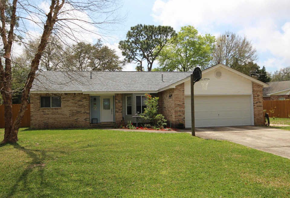Desirable Poquito Bayou Neighborhood home! Wonderful opportunity to own a beautiful updated 3 bedroom brick home close to Eglin AFB. The kitchen features new cabinets, stainless appliances, a breakfast bar with pendants lights, and granite counter tops. Large living room with beamed ceiling and open dining room give this home a contemporary look and feel. Baths have been renovated with new vanities, showers and tile flooring. All new lighting and ceiling fans throughout. Fresh paint and carpet throughout. Roof only one year old! Enjoy barbecues and swimming in the above-ground pool in the large back yard. The Poquito Bayou Park with boat launch on Bay St. is just around the corner. Residents enjoy the boat dock and launch, swimming area, playground, and picnic areas with no HOA fees.