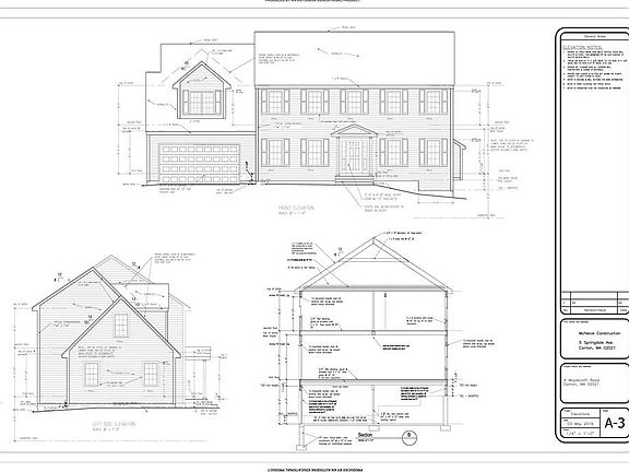 New Construction Colonial located in desirable Spring Valley and featuring an open floor plan, custom bright eat in kitchen with stainless steel appliances, granite countertops, center island and large dining area, adjoining gas fireplaced living room, formal dining room, 2nd floor laundry, 4 good size bedrooms including a master suite with walk in closet and private full bath with large tile shower, central air, vinyl siding, 2 car garage, maintenance free deck, convenient to train, highways and Westwood Station and only steps to JFK Elementary School. Built by a well known & reputable Canton builder. Fall/Winter Delivery.