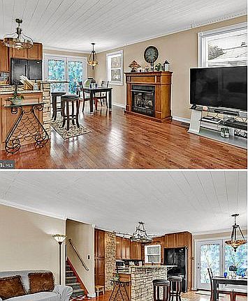Perfect, move in ready, Yardley split level home. Such a unique charming home, nicely updated to maximize space and cute as can be. Gleaming hardwood floors greet you as you enter the the main level that's been totally opened to encompass the living, dining area and kitchen to create an open concept living area. The remodeled kitchen boasts 48" custom maple cabinetry, double door custom pantry with pull out pantry drawers, granite counters, double sink, double drawer dish washer, Island gas stove and custom backsplash finish. A gas fireplace is the focal point of the space leading to patio doors the rear deck. The lower level offers space for a den, office or playroom that leads to the laundry area and powder room. The current owners had opened the upper level Master bedroom into what was the 3rd bedroom to create a comfortable master bedroom, capturing unused space above the stairway to create a unique storage space and TV area. The Master also includes a cedar lined walk in closet. Hardwood floors in the hallway to the 2nd bedroom and updated full bath with vaulted ceiling and skylight. Easy living in this home with low taxes, replaced insulated windows, maintenance free exterior, economical gas heat and central air. A quick jump to 295 to NJ and Philly, a short bike ride down the Delaware canal path to downtown Yardley for charming shops and Wawa coffee.