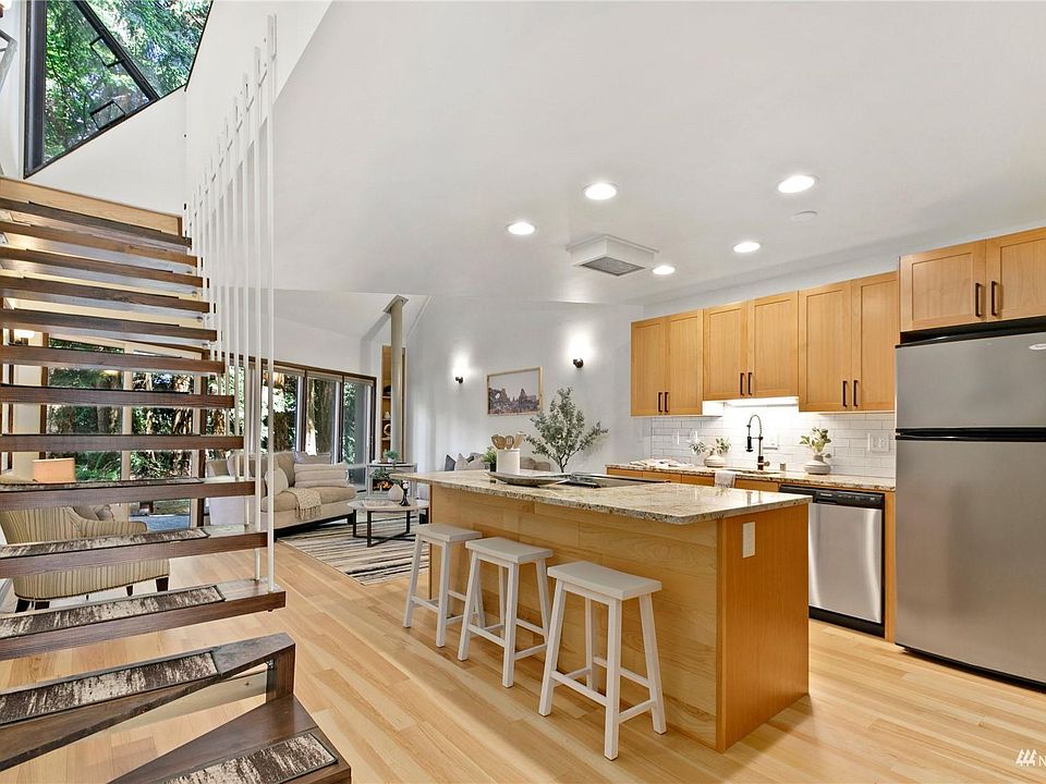 The perfect vacation spot or year round living located in the heart of Sudden Valley and walking distance to most of the community amenities including an 18-hole Championship golf course, fitness center, swimming pools, lake beaches, restaurants, tennis courts, walking trails, dog parks & more! This architecturally-unique 1BR/1.5BA end unit condo is bright & open and very private. Features include new appliances, granite countertops and cabinets in the kitchen, Engineered hardwood flooring, gas fireplace in living room and freshly painted throughout. Enjoy the huge loft bedroom w/soaring vaulted ceilings, tons of windows and private views of the surrounding forest. Plus, lots of closet space and en suite bath. Live like you're on vacation!