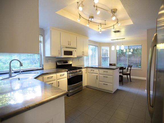 Nestled at 4 Marina Blue Ct in beautiful Sacramento, CA, this attractive residential property offers a wonderful opportunity to experience comfortable living. The property is in great condition. The living room is a captivating space, featuring a fireplace that serves as a warm focal point, surrounded by built-in shelves for displaying treasured belongings; the high and vaulted ceiling enhances the sense of spaciousness, creating an airy and inviting atmosphere. The kitchen offers a delightful culinary experience, featuring a stylish backsplash and stone countertops that provide ample space for meal preparation; the kitchen peninsula offers a casual dining option, while the tray ceiling adds a touch of architectural elegance. Each of the three bathrooms provides a personal sanctuary, featuring a tiled walk-in shower for a refreshing start to the day, and a tile tub for a relaxing soak in the evening; the double vanity offers convenience and plenty of space. The tiled roof adds to the home's curb appeal, complemented by a pergola and patio that create an inviting outdoor space for relaxation and entertainment; the fenced backyard provides privacy and security, while the laundry room adds convenience to daily chores; the walk-in closet offers ample storage space for your wardrobe. This residence offers a harmonious blend of comfort and style, making it an exceptional place to call home.