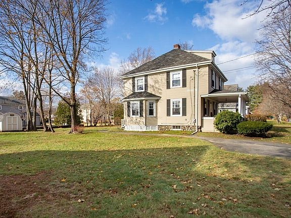 Such an inviting home with so much to offer! This property is ready for your vision and updates. Situated in an idyllic setting along with the convenience of being one mile from Rte 95/128 and just around the corner from Hurld Wyman Elementary. Front and back staircases to the second floor add to the great flow of this home. The walkup attic offers incredible storage options with a potential for more finished space. Enjoy the expansive front porch and mature Japanese Cherry Blossom trees that are so vibrant in springtime. Large, flat back yard on a double(+) lot. Storage shed for your lawn supplies. Add'l partially finished heated basement space. Some larger projects have been done throughout the years -- gas heat conversion, windows, back steps/porch, bulkhead door, vinyl siding. Quick close is possible and preferred.