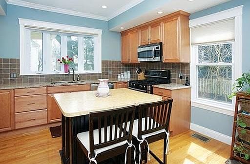 Contemporary, Impeccable Victorian in prime Newton Corner location! Remodeled ten years ago: walls, ceilings, kitchen, bathrooms, windows, roof, electric and heating systems, central air conditioning. Luxurious master bedroom with cathedral ceiling and bathroom with skylight and granite counter. Kitchen with granite, bamboo island, stainless steel appliances. High ceilings, recessed lights, hardwood floors throughout. Beautiful brick patio, updated front and back porches. Landscaped fenced-in backyard; rhododendrons, hemlocks, spruces. Garage with double-driveway. This bright and updated home has easy access to shops, major highways, Logan Airport, Downtown Boston and Cambridge.