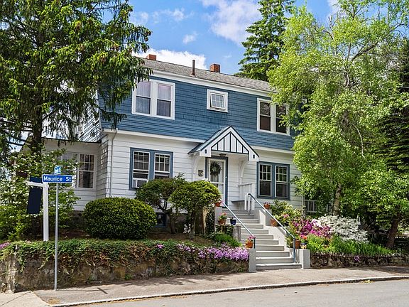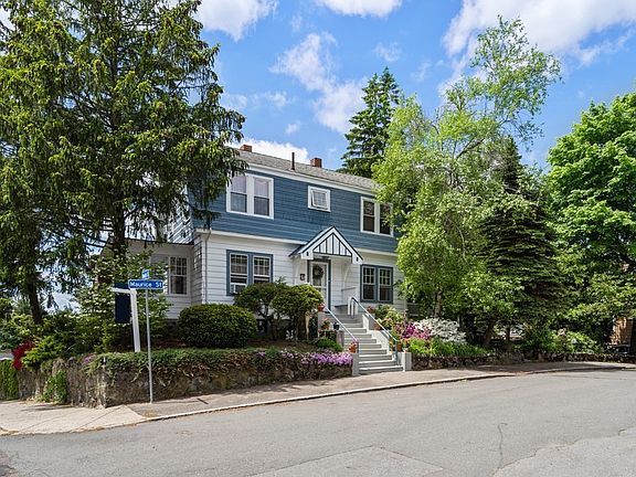 Perched high atop a hill in a desirable neighborhood abutting parks and conservation land, this center entrance Colonial-style residence opens to formal living and dining rooms. The living room with stone fireside connects via French doors to the glass enclosed sunroom and the dining room opens to an expansive deck ideal for alfresco dining. A kitchen with eat-in space for four completes the first level. Upstairs are the three bedrooms and full bath, with the master bedroom including a spacious walk-in closet. A full basement houses the laundry room. A stone’s throw to the freeway and public transportation for easy commuting and access to city nightlife.