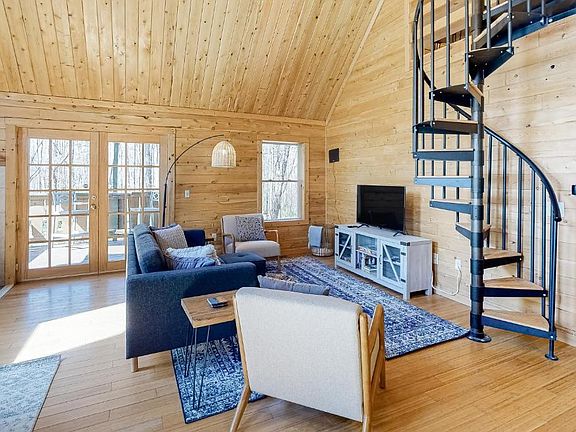 This is a beautiful home with a rustic feel but modern look. Large back yard, back deck with tables and chairs and perfect for morning coffee. Listen to the loons and owls that are frequent visitors.