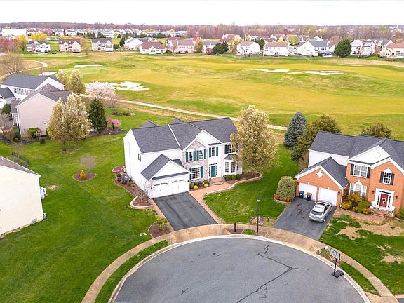 Welcome to this stunning home, located on a culdesac, and beautifully situated on the 4th Hole of the Frog Hollow Golf Club located in the popular community of The Legends in Middletown. This beauty has been well maintained, updated and improved. And when built includes extensions on each floor, including a Morning Room off the kitchen, Siting Room in the primary bed room and extended area in the finished basement. Lets get to some of the noteworthy details: Architectural Roof Shingles in 2015, DUAL Zone (2) HVAC replaced in 2016, Water Heater replaced 2016. And Year 2022 Improvements include: Home Interior Painted (walls and ceiling) including Foyer and Finished Basement (Excluding 2 front bedrms), Refinished the main floor hardwood flooring, Installed Hardwood Flooring throughout upstairs, except installed Berber carpet in the hallway. Installed Berber carpet in the Finished Basement, new Sink and Toilet in Powder Room, Installed new garage door. Installed Trex Deck and railing, with sliding door, off the 2nd floor guest bedroom facing the golf course. As you enter this home you will feel the elegant and welcoming ambience and notice the attention to detail with the selections in flooring, the variety in the molding (crown, wall, door frames, etc), lighting, fixtures, cabinets, countertop, etc. When you enter the home, you are welcomed by beautiful refinished hardwood flooring and a grand foyer with a dual 2-story view, and view of the hallway bridge, and there are a second set of stairs leading into the kitchen/family room. With this traditional floor plan you the foyer is flanked with an elegant Dining Room, with dry bar counter around the corner, on the left and a private main floor office, featuring bay window with golf view and French doors. As you walk around toward the back of the home, you pass the Hall Bathroom, a Formal Living Room with multiple golf views, and then to the Family Room featuring a stunning gas fireplace and the open view to the 2nd floor galley hallway bridge and open to the large and well appointed Kitchen. This stunning and large kitchen is the heart of the home, featuring Cherrywood cabinets, Recessed lighting, Corian Counter with raised edge and Slate Backsplash and flooring, Large Island with base cabinets and pendant lighting and bar stool seating, separate large galley style counter with cabinetry above and below, Double sink with large curved single handle pull down sprayer, with a raised counter with pub chair seating into the adjacent Morning Room, which features walls of windows with stunning backyard and golf view, and a door to the paved patio and beautifully landscaped yard. The laundry, large pantry and garage complete the main floor. The upper floor is the private quarters, hosting the Primary Bedroom with beautiful tray ceiling, sitting room, large walk-in closet, large bathroom with dual sinks, glass door shower, corner tub, laundry chute to the laundry room; hall closet, 3 additional bedrooms, one with direct access to the hall bath and a deck with sliders with tranquil golf view. The Basement was partially finished at new construction, includes a Full Bathroom and a Walk-Out Stairs with a new Exterior Door and Storm Door, and part of the unfinished area was designated for a Bedroom Suite that already includes an Egress Window. And you will enjoy the Bose Sound System in the Dining Room, Exterior Patio and in the Primary Bedroom. Home Security System via Berley Security (Paid through July) and Ring Cameras (front, side and back). Simply Green Lawn provides 7 Treatments for the year and is Paid until year-end. The Community Name is The Legends. The Golf Course is The Frog Hollow Golf Club and hosts The Pub and Golf Pro Shop. TheEdge18 manages the Banquet Hall, Swimming Club and Tennis Club. Home Size and Tax Info provide by NCC parcel view website and Town of Middletown web site; Agent/Brokerage not responsible if any inaccuracies.