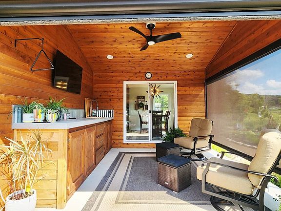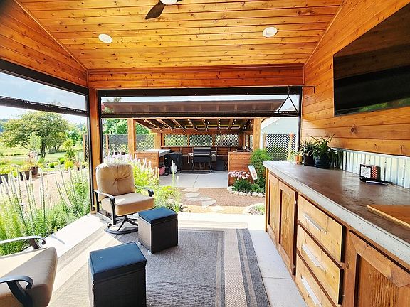 Wet barElectric blindsTray and vaulted ceilingsCovered patio