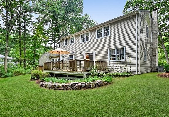 This Impeccably maintained 4 bedroom home located within desirable Algonquin Estates is within walking distance to Blue Hills Country Club. The main bedroom has an en-suite and walk-in closet and is perfect for buyers who enjoy privacy. This home has hardwood floors throughout, an eat in kitchen, mudroom, formal dining room, living room with a fireplace to snuggle by in the winter. There’s also central air with a large mahogany deck and private backyard for entertaining in the summer and a finished basement with pool table that expands the entertaining possibilities. Work from home? There’s a home office on the first floor with built in bookshelves. Commuters take note that this is a short distance to Routes 93, 128, 95 and 24 and University Ave commuter rail. Fantastic shopping close by as well! Also a short drive to the Blue Hills which offers hiking trails, skiing in the winter and close to Houghtons Pond, a fresh water public beach. Enjoy nature with close proximity to Boston!