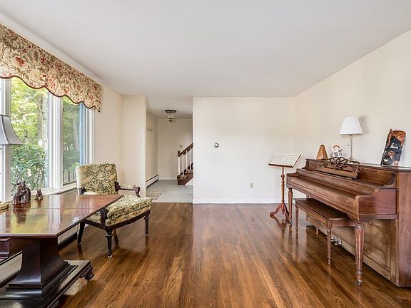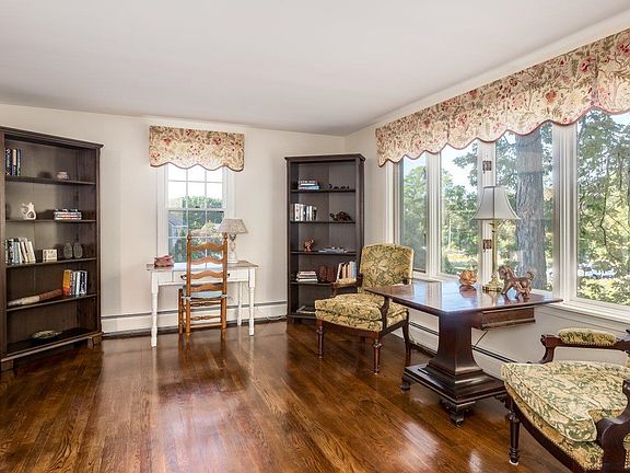 Meticulously maintained 4 bdrm, 2.5-bath Colonial ideally located in a quiet neighborhood with two cul-de-sacs. The floor plan offers great flow for entertaining, with many windows offering seasonal water views & beautiful sunsets. The eat-in kitchen features French doors opening to a sunroom with vaulted ceilings, skylights and wall-to-wall windows, overlooking the backyard. Step outside to a spacious deck, perfect for hosting cookouts or quiet enjoyment, and a large private backyard surrounded by woods. The kitchen opens into the family room with expansive windows that invite in natural light and a wood-burning fireplace with the option to convert back to gas. A formal dining room with wainscoting and hardwood floors flows into a sun-filled formal living room. The first floor is complete with a convenient half bath and laundry. Upstairs, the front-to-back primary bedroom and ensuite offer comfort and privacy, with three additional bedrooms, all featuring hardwood floors, and a full bath. Plenty of storage in the basement with updated systems and a door leading into to the two-car garage. The property features mature landscaping, flower beds, stone walls and a small garden plot. Located next to two of Durham’s most iconic landmarks: Wagon Hill known for winter sledding and walks by the bay, and Emery Farm featuring a small café and market. This home offers both convenience and tranquility, close to local trails and minutes into Durham, Portsmouth and Seacoast beaches.