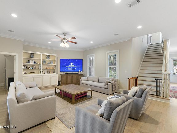Located in the downtown Heart of Ocean Springs, Basically walk or ride your golf cart most everywhere.The home is a wide open floorplan with the master bedroom downstairs and 3 + bedrooms up. This home can easily be considered a t bedroom because of the room layout. fantastic privacy fenced backyard. Too many amenities to list. A must see